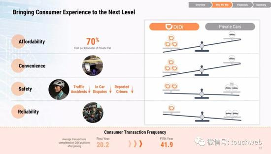 程维说,那一年,滴滴出行APP上线了,目标很简单——就是为了减轻大家打车时的痛苦。到2012年底,每天有10 万乘客在滴滴的帮助下叫到出租车,不需要挨冻就能轻松踏上回家的旅程,包括我自己在内。