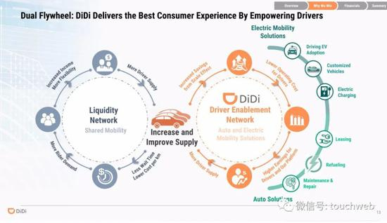对于上述众多业务背后的商业生态,滴滴在招股书中归纳为“四个核心战略版块”,“三大业务”以及“双飞轮”。