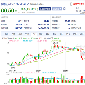 AEM是一家专注于加拿大、瑞典和芬兰矿产勘探和生产的公司。今年 4月,AEM宣布了每股 0.35 美元的季度股息,远期收益率为 2.2%。 2021 年第一季度,该公司每股收益为 0.67 美元,而预期为 0.60 美元。本季度收入为 9.3439 亿美元,同比增长 29.08%。