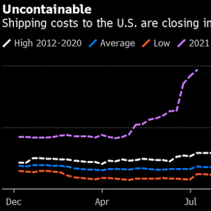 尽管运费飙升为集装箱船运企业带来了丰厚的利润,但进口商也面临着更难消化的高昂成本。一些公司提高零售价格,加剧了通胀压力,而同时疫情相关的供应瓶颈也在阻碍着经济活动。