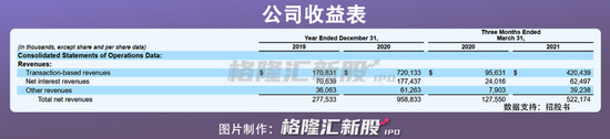 招股书显示,Robinhood 2019年、2020年的营收分别为2.78亿美元、9.59亿美元;2021年第一季度的营收为5.22亿美元,比上年同期的营收1.28亿美元增长了309%。