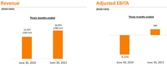 1、实现营收2057.4亿元人民币(单位下同),同比增长34%;不及此前彭博预期的2093.8亿元;