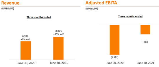 2022财年Q1,饿了么持续加强优质商家基础建设,加大对用户获取和用户体验提升的投入,6月季度饿了么订单量同增50%。