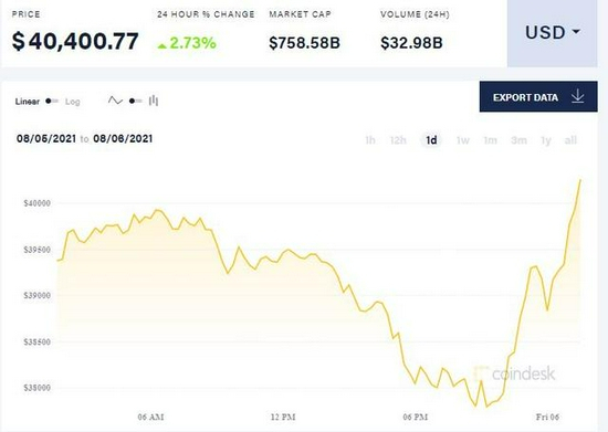 这一消息发布后,比特币24小时内涨幅扩大至逾2%,从39710美元一线升至突破4万美元,刷新日高,也是8月2日以来首次重返这一整数位心理关口上方。