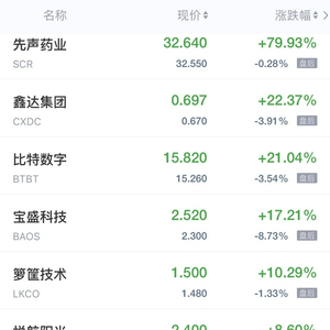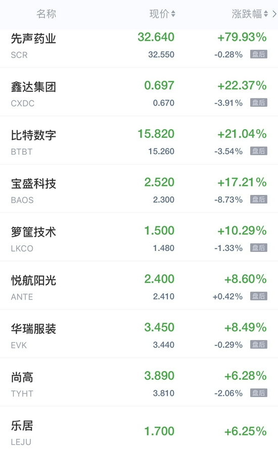 比特数字涨超21%,箩筐技术涨超10%,乐居涨超6%,第九城市、易电行涨超5%,趣头条涨超4%,好未来、讯鸟软件、途牛涨近4%,中网载线、一起教育涨超3%,携程、极光、猎豹移动涨超2%,新东方、迅雷、微美全息涨近2%,百度、前程无忧涨超1%,高途、雾芯科技涨近1%。