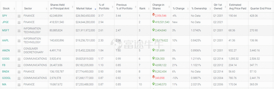 金融服务机构摩根大通(以下称小摩)公布了其第二季度13F文件。