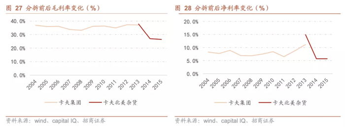渠道商巨头冲击上游供应商的定价权。对于大型的渠道零售商来说,还身兼了批发商的渠道功能,通常通过大量进货来使得己方具有更强大的议价能力,而这些巨型渠道零售商的销货渠道对于供应商来说至关重要。比如美国零售巨头好市多(Costco)规定所有商品的毛利率不能超过 14%,扣除会员费后商品的平均毛利率仅在10%左右,开市客采用量贩式的零售模式,精选少量SKU,但单一SKU进货量巨大,这使得公司在与供应商进行谈判时具有出色的议价能力。开市客要求供应商提供市场上最低定价,如果双方议价没有达成统一,该供应商提供的商品便无法在好市多出售。强大的议价能力使得好市多能够以最低价格进货,甚至能够买断部分商品。正是因此,收到开市客、沃尔玛等渠道商打压,卡夫亨氏的产品议价权较弱。巴菲特在接受电视采访时承认,“议价能力变弱”致使卡夫亨氏“没有我们想象的那么强大”,巴菲特在买卡夫时可能忽略了零售渠道商的变革,没有关注到这一行业变量。