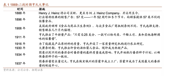 亨氏定义现代番茄酱,产品创新极强。亨氏定义了现代番茄酱的口味,在上世纪初期,那时的番茄酱尽管热销,但是由于不经腌制、发酵处理,存在保质期短的问题,当时Henry J. Heinz决定通过更改配方而非使用防腐剂来解决保质期问题,此前的番茄酱是用未成熟的番茄制成的稀薄水状物,Heinz通过使用成熟的番茄制作番茄酱来增加粘稠度,加入更多的醋和糖来腌制番茄,从而延长番茄酱的保质期。这就形成了现代番茄酱,一经推出就受到市场热捧,并且 驱逐挤退了旧配方番茄酱,故而说亨氏定义了现代番茄酱的口味。