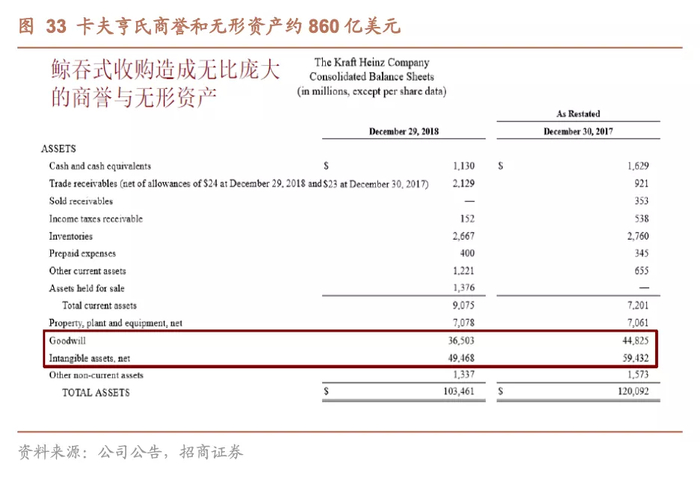 估值方面由于卡夫亨氏收入增速停滞,估值三年内下降较多,2018年估值的暴跌系计提减值导致利润巨亏影响。