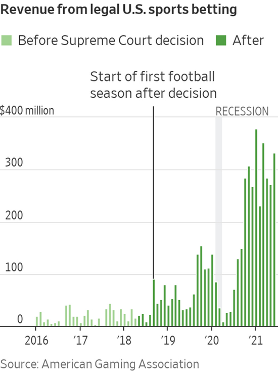 在线体育博彩热潮的导火线出现在2018年,当时美国最高法院为内华达州以外的州将体育博彩合法化扫清了道路。
