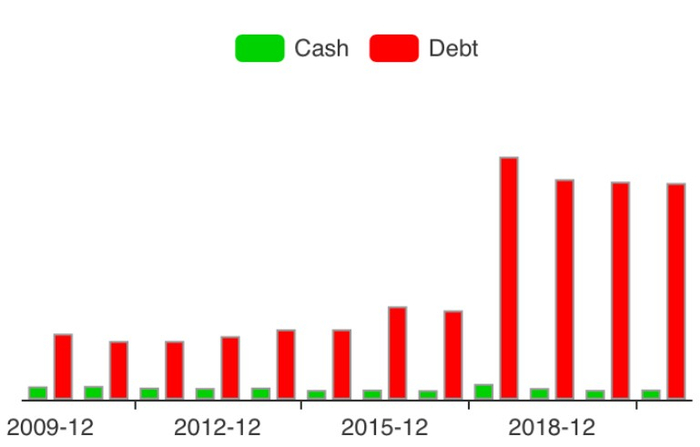 不过,该公司有一个财务指标令人担忧:相对较高的债务负担。下图清楚地显示了其长期负债的扩大。
