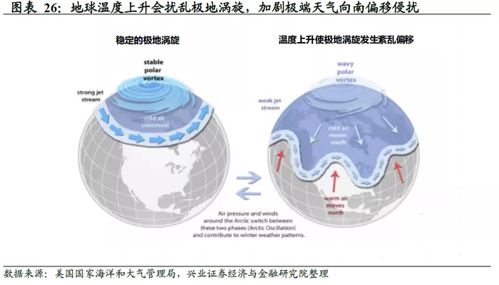 全球气候变化或将加剧极端天气,能源需求易上难下。联合国政府间气候变化专门委员会(IPCC)2014年公布的第五次全球气候评估报告显示,自20世纪80年代以来,全球平均温度上升速度加快,地球正在升温。气象学研究进一步揭示,随着地球温度的上升,北极地区气候循环形成的极地涡旋圈,会受温度上升影响而变得更加不稳定,出现极地涡旋向南偏移侵扰,从而更加容易形成超强极寒天气。极端天气加剧将会使位于北温带的经济体(全球主要经济体大多位于北温带)频繁遭遇冷冬,冬季取暖需求增加,全球能源需求易上难下。