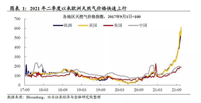 8月后欧洲天然气价格快速上行,引发能源危机担忧。2021年年初以来,在供给短缺推动下,以英国为代表的欧洲天然气价格快速上行,较年初约上涨了5倍。由于能源供应问题难以快速解决,叠加2021年8月亚马尔-欧洲天然气管道发生火灾,欧洲天然气短缺局面愈演愈烈。天然气价格上涨开始向原油及其他大宗商品传导,海外市场关于全球能源危机以及滞涨的担忧在国庆期间也随之爆发。(详见20211007《国庆期间,海外通胀情绪是如何发酵的?》)