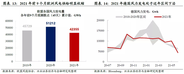 2021年欧洲来风条件恶化,风电供给较之前两年明显下降。