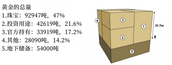 如果你把世界上的所有黄金打包成一个立方体,它的每一面只有21.7米,大约有七层楼高。