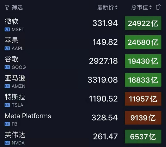 纳斯达克史上首次囊括美股市值最大7家公司 市场资讯 2021.11.02 22:47 英伟达股价持续攀升的同时也创造了纳斯达克的历史,今天是纳斯达克史上第一次囊括美股市值最大7家公司,先是前几年稳定囊括前5大,去年特斯拉加入后纳市稳定囊括前6大,英伟达今天加入最top阵容。 微软超过苹果成为新“股王”!点击投资美股!>>