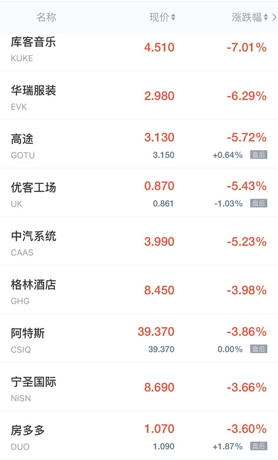 高途跌超5%,贝壳、房多多跌超3%,富途控股跌超2%,满帮、一起教育跌超1%。
