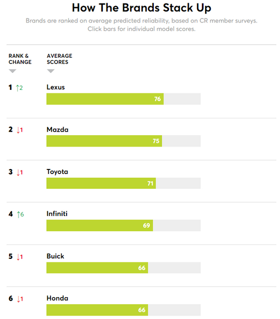 据悉,《消费者报告》重点关注的是这些汽车在过去12个月中出现的问题,并利用这些数据预测各大汽车制造商即将推出的车型的可靠性。其调查了2000至2021年的30多万辆车的车主,并利用这些数据对269种不同的2022年车型进行预测。报告涵盖了28家汽车制造商和144种具有既定历史的车型。