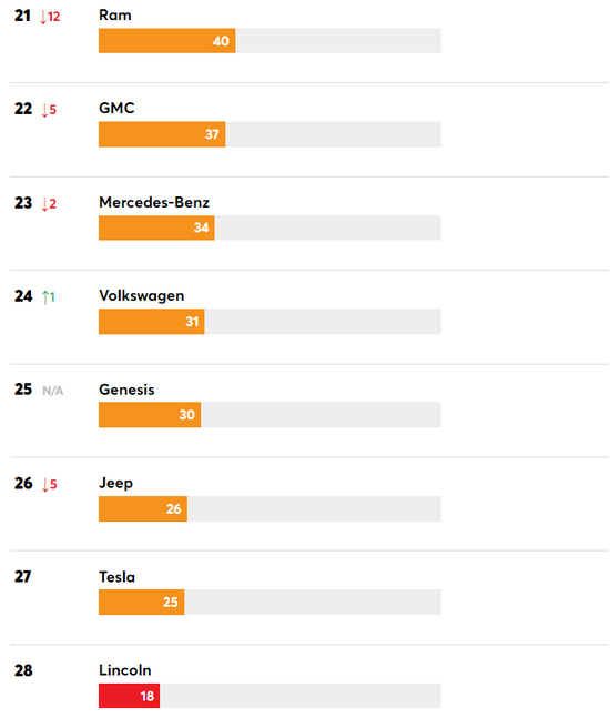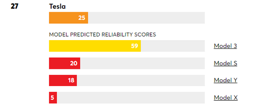 对于特斯拉排名垫底,似乎也不足为奇。毕竟就在同日,特斯拉又因为潜在的气囊问题召回7600辆。