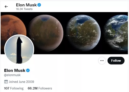 马斯克的推特头像,这是他的火箭剪影,图源:推特截图