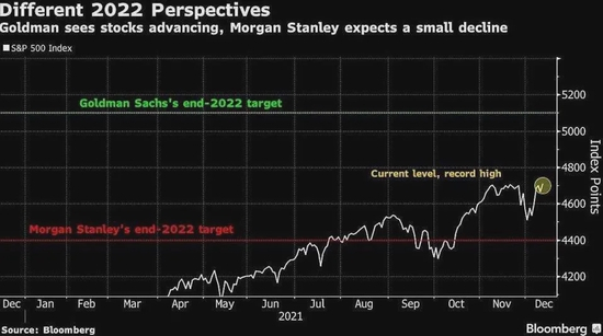 大摩策略师预计,标普500指数将在2022年底前下跌至4400点。高盛集团策略师近期则预计,明年股市将继续上涨,标普500明年将突破5100点,尽管‘速度会放缓’,最大回撤幅度可能在5%-10%之间。