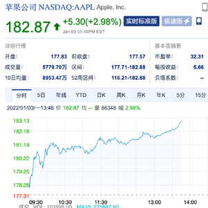 苹果公司市值要超越3万亿美元大关,股价需要达到182.86美元。该公司股价在周一盘中最高达到182.88美元。