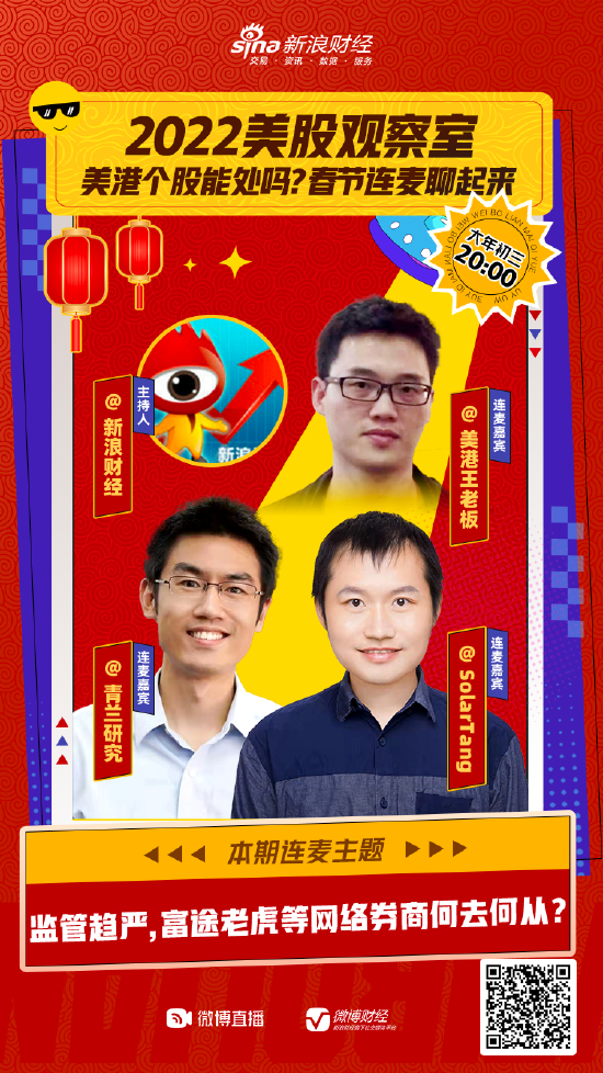 新的监管环境下,这两家中概头部互联网券商备受关注,新的一年它们该如何业绩突围?中概股又将何去何从?大年初三20:00,@新浪财经 邀约财经博主、美股投资人@美港王老板 @SolarTang @青兰研究 为你解读!欢迎点击观看并参与讨论。