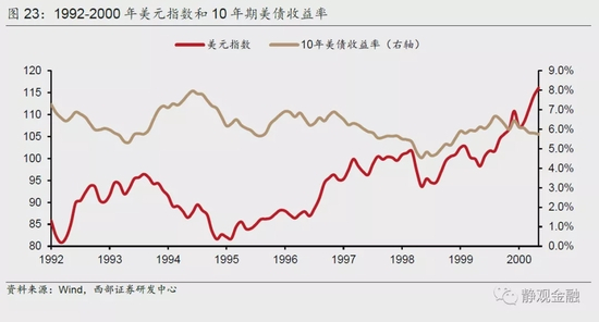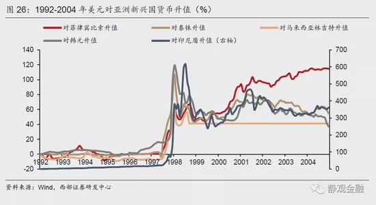 因此,只有在美元升值与美联储加息周期并行的时候才会有新兴危机,前者导致流动性和融资环境转差,后者则推动资本快速撤离、本国金融资产遭重。