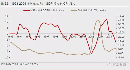 4)2001年阿根廷危机。外因:1999年6月~2000年5月处于美联储加息周期,美元升值。内因:外债庞大。后果:经济滞胀,汇率贬值,股市暴跌。
