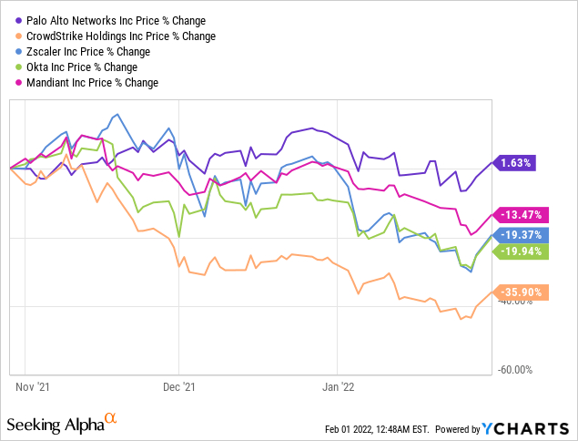 与此同时,尽管网络安全股基本上没有受到其他行业40%至60%大幅下跌的影响,但在同行中,PANW仍然是表现最好的。