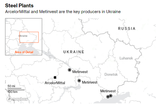 乌克兰主要钢铁生产商包括Metinvest BV,该公司在乌克兰东部的工业中心地带设有工厂,包括在第聂伯河旁的工厂,以及在马里乌波尔的两家大型工厂。