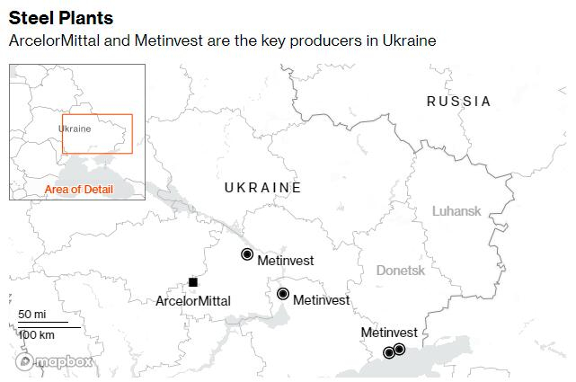 乌克兰钢铁约占欧洲进口量的十分之一,因此任何钢厂生产或出货的中断都将让欧洲大陆本已紧张的市场更加紧俏,并在价格于去年达纪录水平后保持在高位。