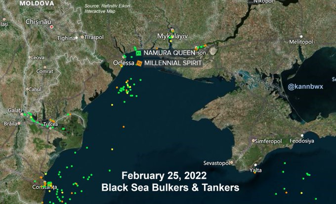 安全咨询公司Dryad Global创始合伙人Munro Anderson表示,“我们看到了一些船只被击中的突发事件。任何停靠在乌克兰水域的船只早就应该离开了,这里是战区——我们已经说了48小时了。任何在乌克兰水域的船只都需要立即离开,在AIS上明确广播,阐明他们的意图。”