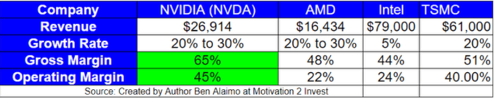 该公司还拥有 65% 的出色毛利率和 45% 的营业利润率。这比包括 AMD 和英特尔在内的所有竞争对手都高。