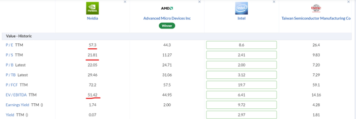 将公司与提供类似服务但在某些方面有所不同的竞争对手进行估值,很明显,从历史估值指标来看,英伟达是最昂贵的,而英特尔是最便宜的。当然,许多人会认为这反映了英伟达的“增长潜力”,使其成为真正的成长股。