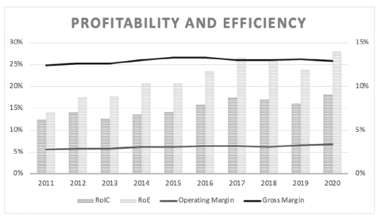 此外,我们可以提到极其稳定的毛利率和营业利润率以及高于平均水平的投资资本回报率,这也表明Costco是一家伟大的企业,拥有广泛的经济护城河。
