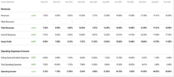 毫无疑问,Costco Wholesale Corporation在过去几个季度报告了强劲的增长率,业务表现相当不错。从过去几个季度的收入、毛利润和营业利润来看,我们看到同比增长率很高。而且 - 更重要的是 - 我们还看到了高水平的稳定性和一致性。
