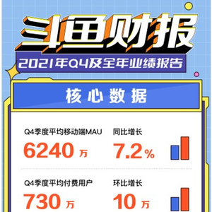 斗鱼发布2021Q4财报:MAU再创新高至6240万,总营收23.28亿元