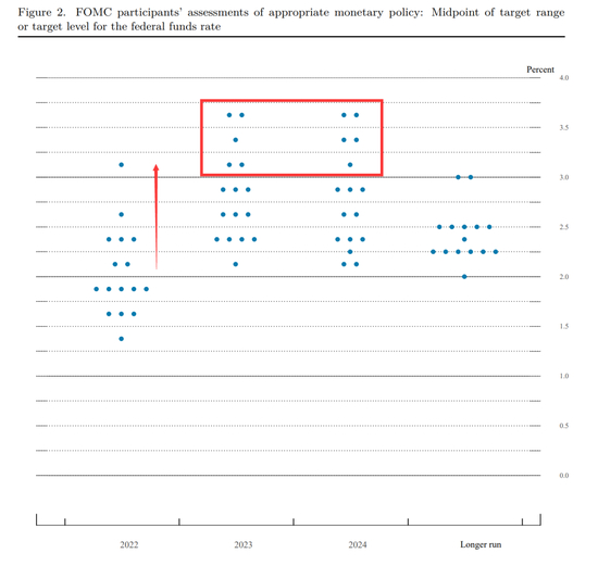点阵图所指的利率路径大幅上调,并含有更多令人不安的鹰派可能。