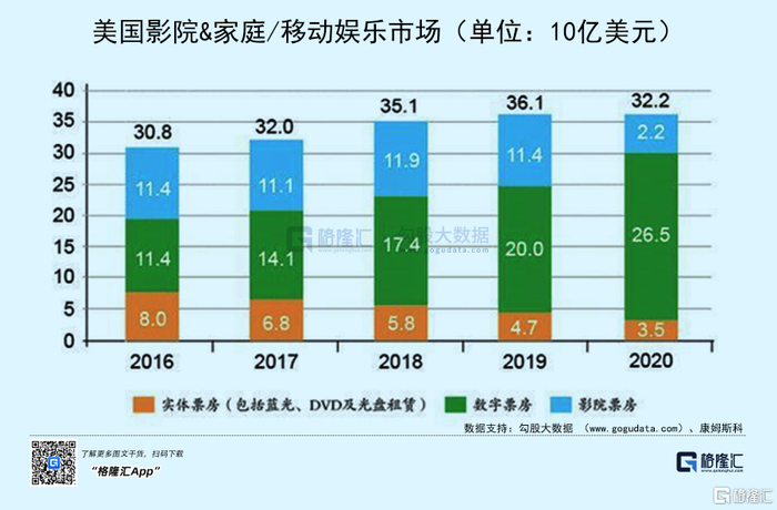 此消彼长,2019年,奈飞营收突破200亿美元,几乎是北美全年票房的2倍,而且不用向院线支付昂贵的分成。