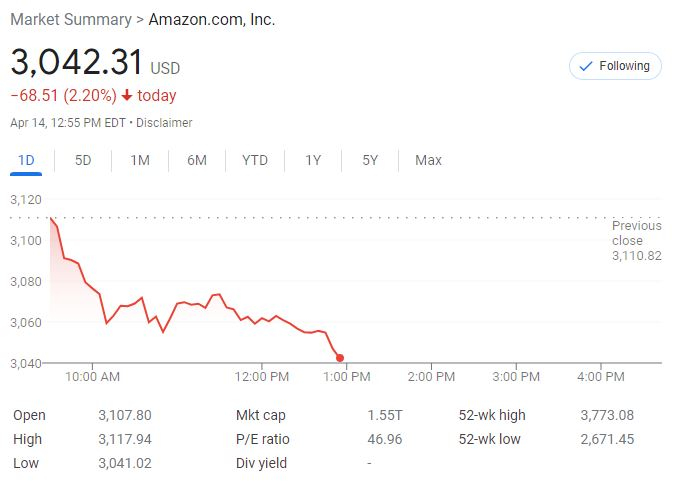 周四美股午盘时,亚马逊股价跌超2%,从一周高位回落,今年以来已累跌8.7%。