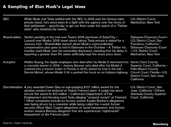 至于马斯克的其他法律问题,在特拉华州以 130 亿美元审判他在电动汽车制造商 2016 年收购 SolarCity 中的角色后,他每天都在等待裁决。