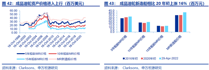 对此,结合俄乌冲突全球供应链重构等近期变化,申万宏源闫海团队指出,在不考虑俄罗斯运力退出的情况下,成品油轮产能利用率从2021年76%水平上升至89%以上,成品油轮进入景气周期,且景气度有望超2015年水平。