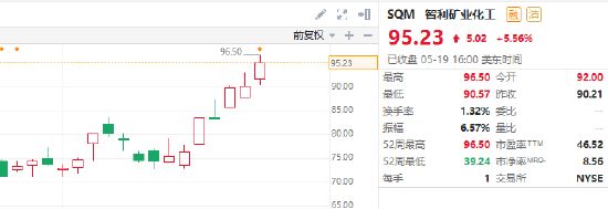 2、业绩大超预期!智利矿业化工 $SQM Q1营收同比暴增282%,股价冲击历史新高;