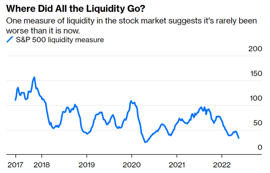 在期货市场,保证金的要求也会影响流动性。随着保证金增加,投资者无需追加保证金就能交易的合约数量会减少。正如彭博社的卡梅伦(Cameron Crise)上周指出的那样,当前股市的流动性是有史以来除了金融危机和疫情早期之外最糟糕的。