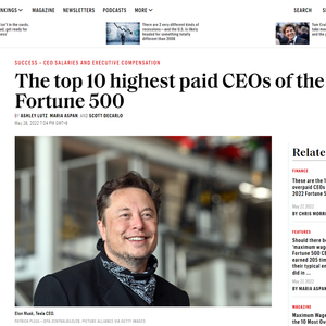 IT之家 5 月 28 日消息,《财富》杂志今日发布了一份榜单,盘点了财富 500 强企业中薪酬最高的 10 个 CEO。