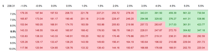 鉴于我的假设和计算,Lululemon 似乎被高估了一点。我的计算得出了 238.31 美元的合理基本目标价格。