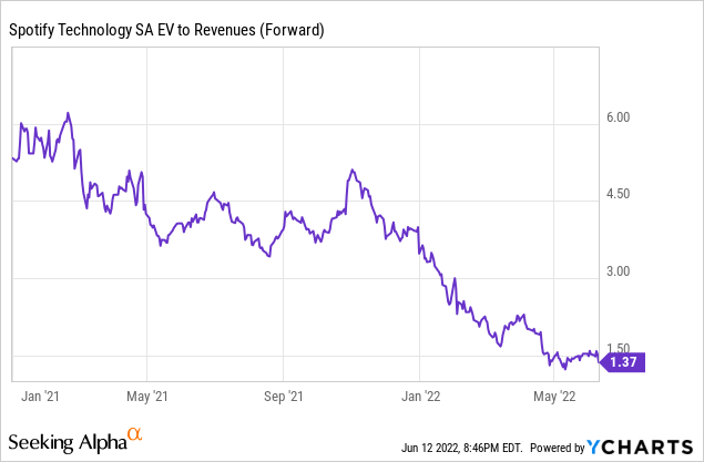 我在 2022 年发表了几篇关于 Seeking Alpha 的文章,解释了我购买股票的原因在 Spotify 中,以及为什么我认为市场对他们 2021 年第四季度的业绩反应过度。自这些文章发表以来,Spotify 的股价持续下跌,到 2022 年迄今已下跌 58%。