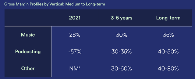 由于播客毛利率预期逐步增长,管理层预计 Spotify 的中期综合毛利率将达到 30%(目前根据季度在 25-28% 之间徘徊),长期预期为 40%综合毛利率。