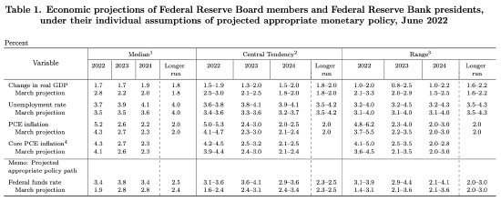 2022、2023、2024年底PCE通胀预期中值分别为5.2%,2.6%,2.2%,3月预期分别为4.3%,2.7%,2.3%;